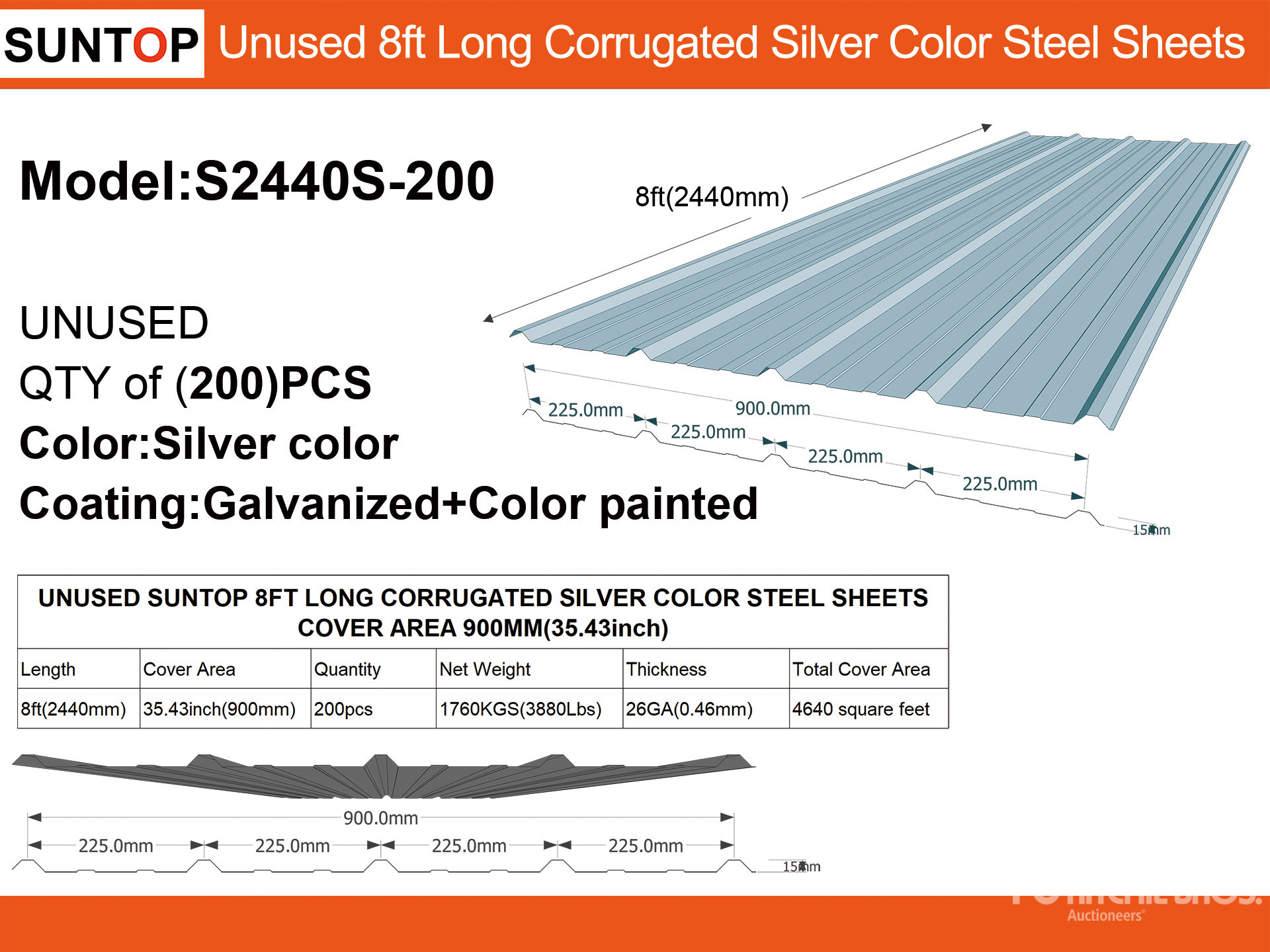 Quantity of (200) 2026 SUNTOP S2440S-200 35 in x 8 ft Galvanized Corrugated Steel Panel (Unused)