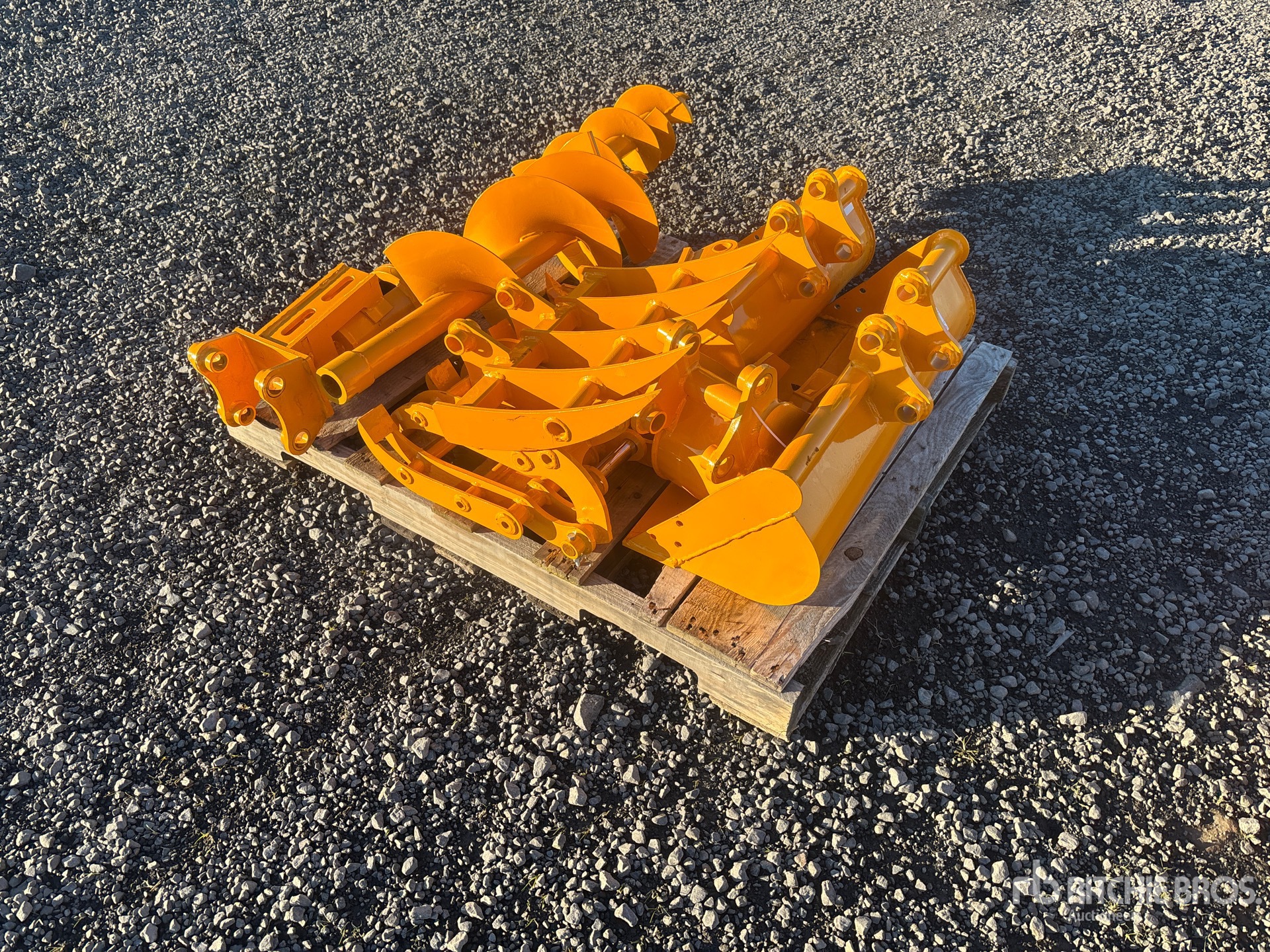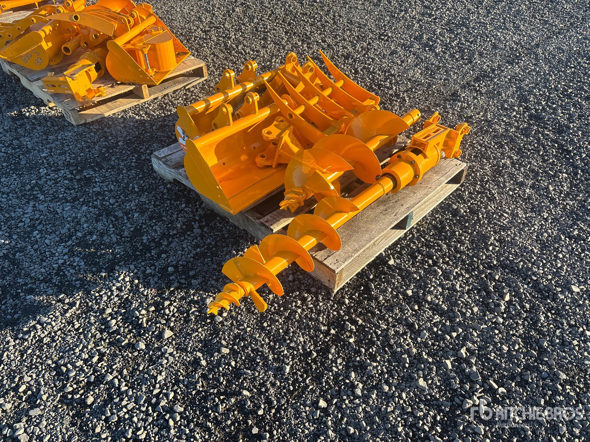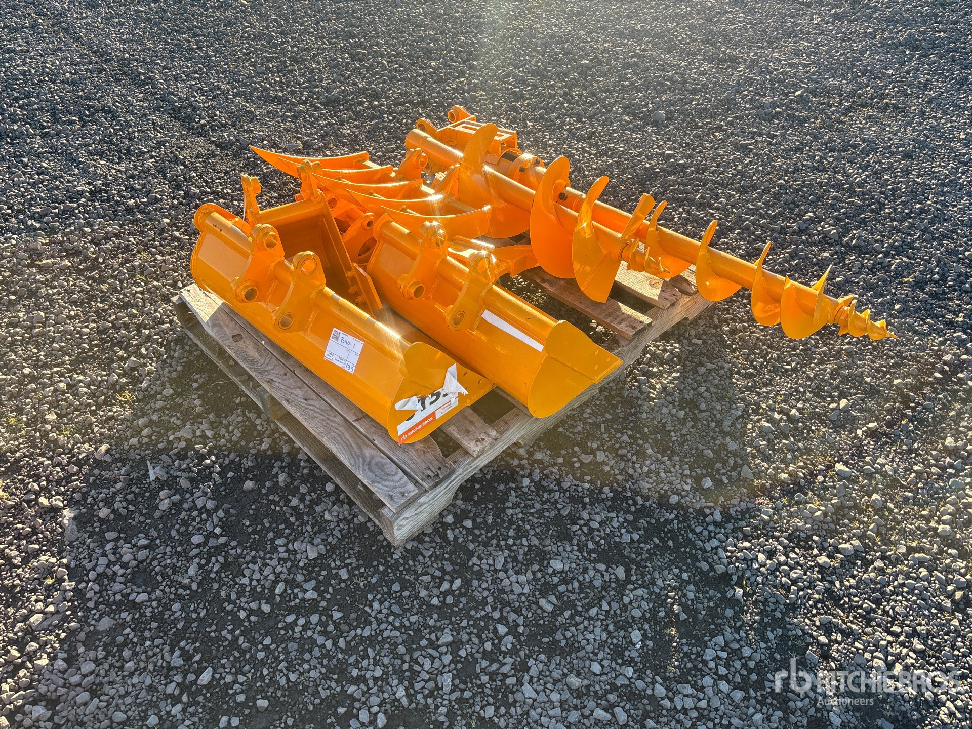 Quick Coupler, Rake ,Grabber, (1) 8 in Bucket, (1) 32 in Bucket, Auger w/ (1) 12 in Bit, (1) 8 in Bit, Ripper
