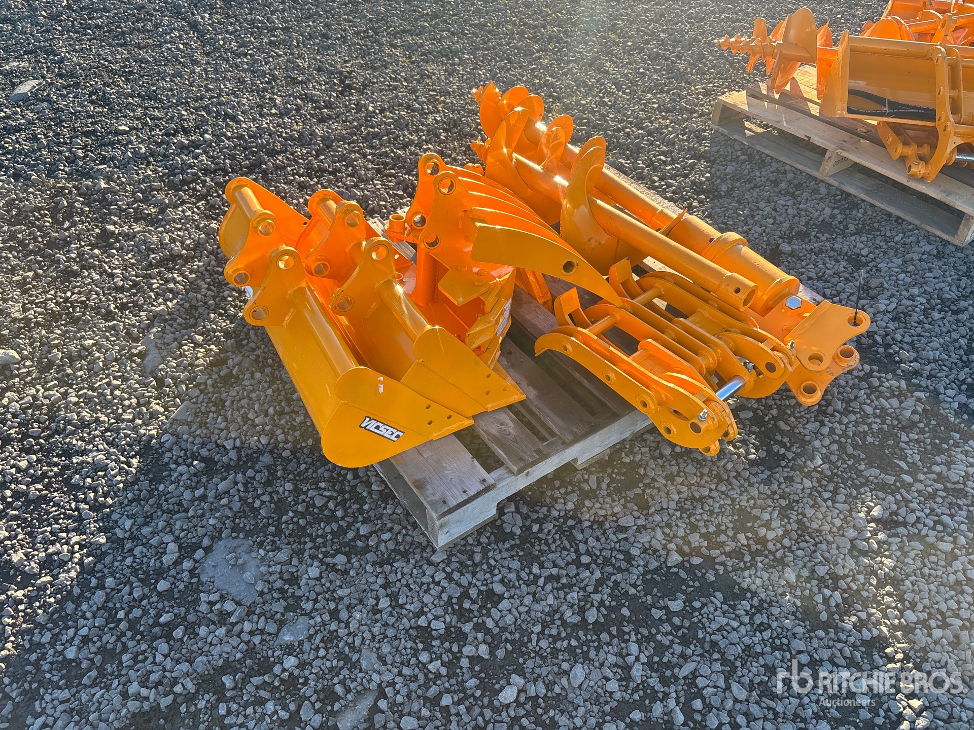 Quick Coupler, Rake ,Grabber, (1) 8 in Bucket, (1) 32 in Bucket, Auger w/ (1) 12 in Bit, (1) 8 in Bit, Ripper