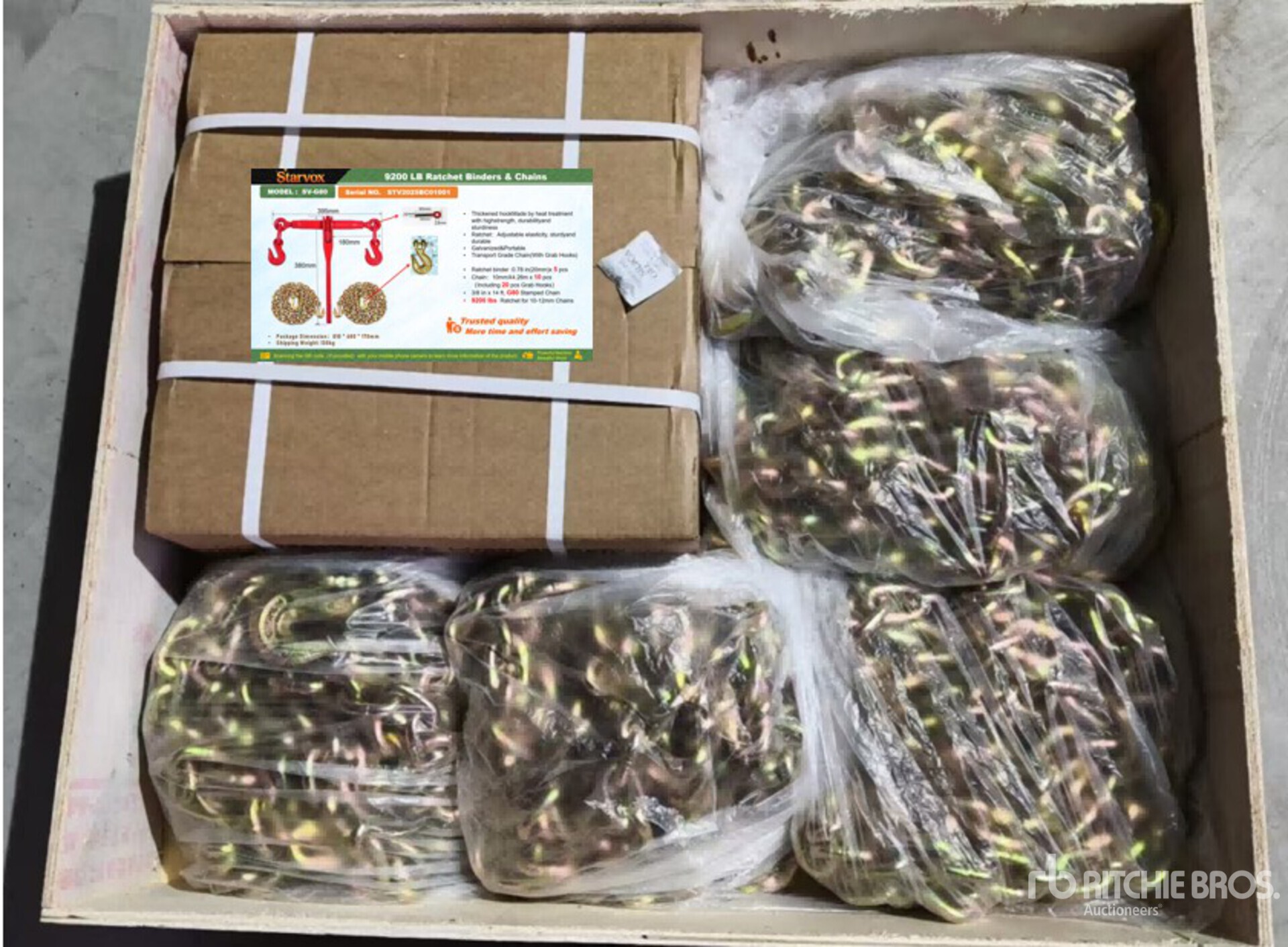 (5) 9200 lb Ratchet Binders, (10) 3/8 in x 14 ft G80 Chains & (20) Grab Hooks